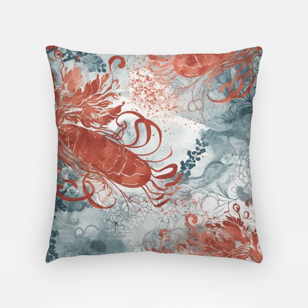 Abstract Lobster Batik Artisan Pillow Case 18 Inch Blue and Red