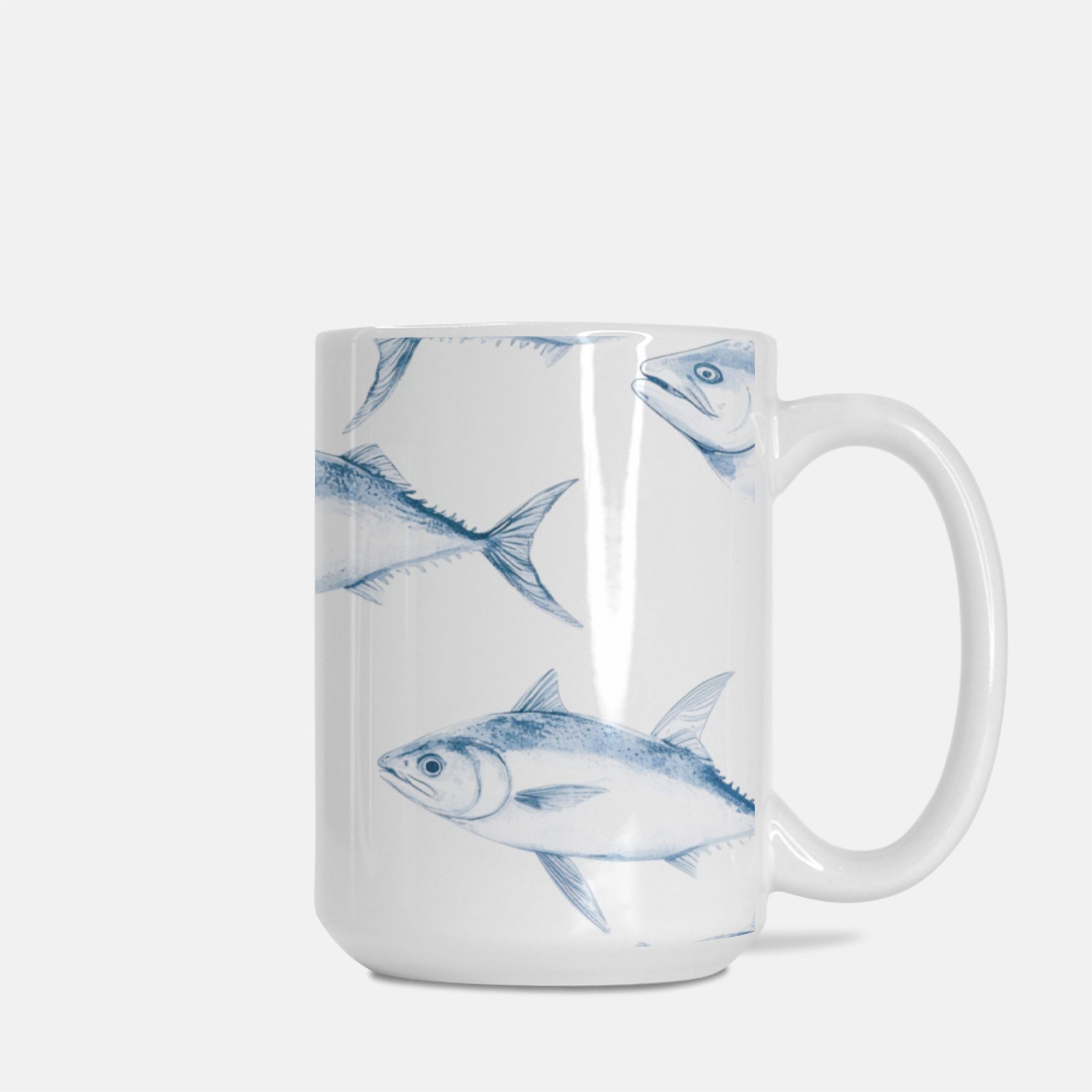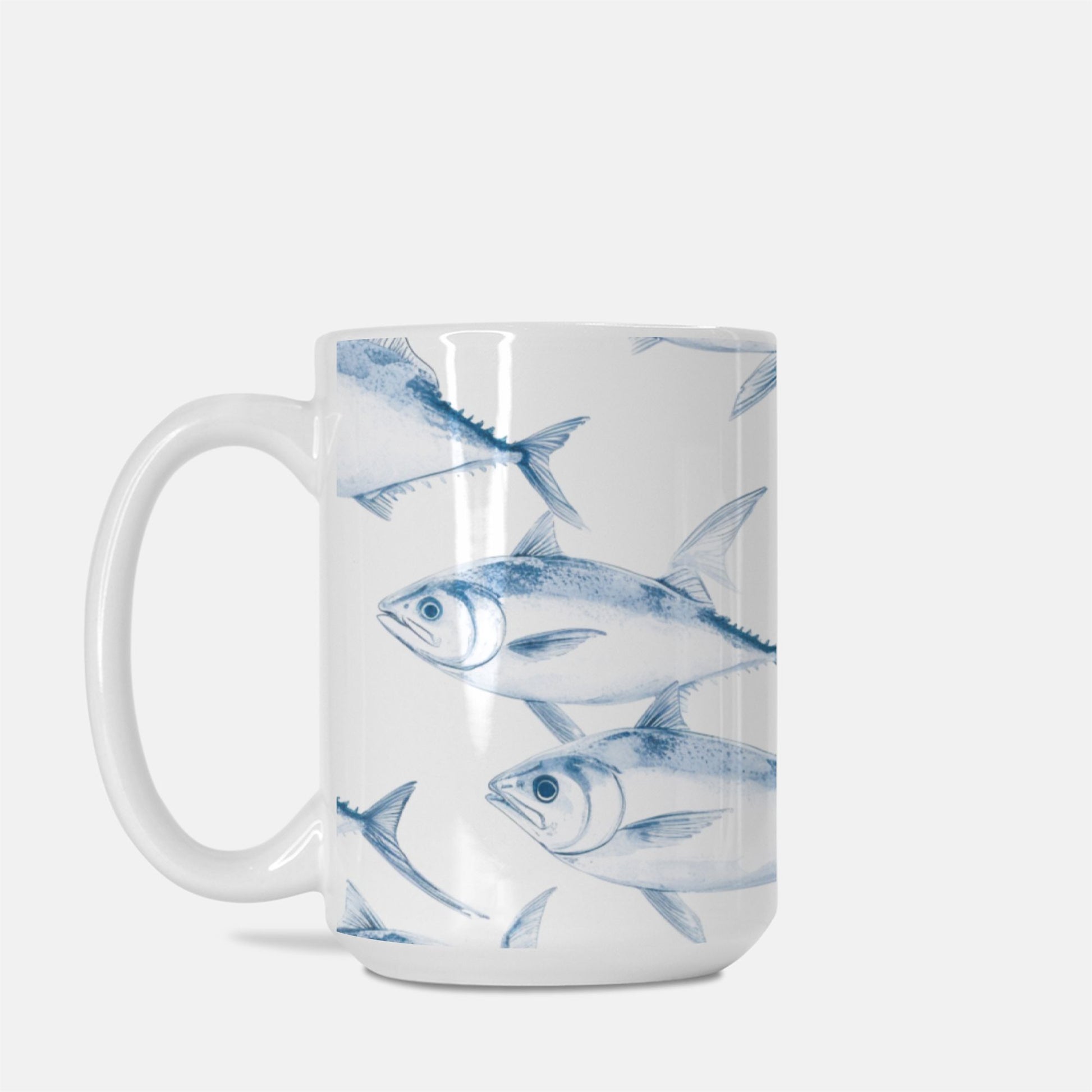Meet the Bluefin Tuna Mug Deluxe 15oz, your new morning companion that’ll make every coffee break feel like a fishing trip... without the wet socks! Sip in style with this sleek white ceramic mug featuring a dreamy bluefin tuna design that says, “I’m serious about caffeine, but I love a good catch.” Perfectly sized for that extra boost, it's the ideal vessel for reeled-in relaxation. Whether you’re angling for a productive day or just want to avoid that 8 AM meeting, this mug is your fin-tastic ally. Dive in!