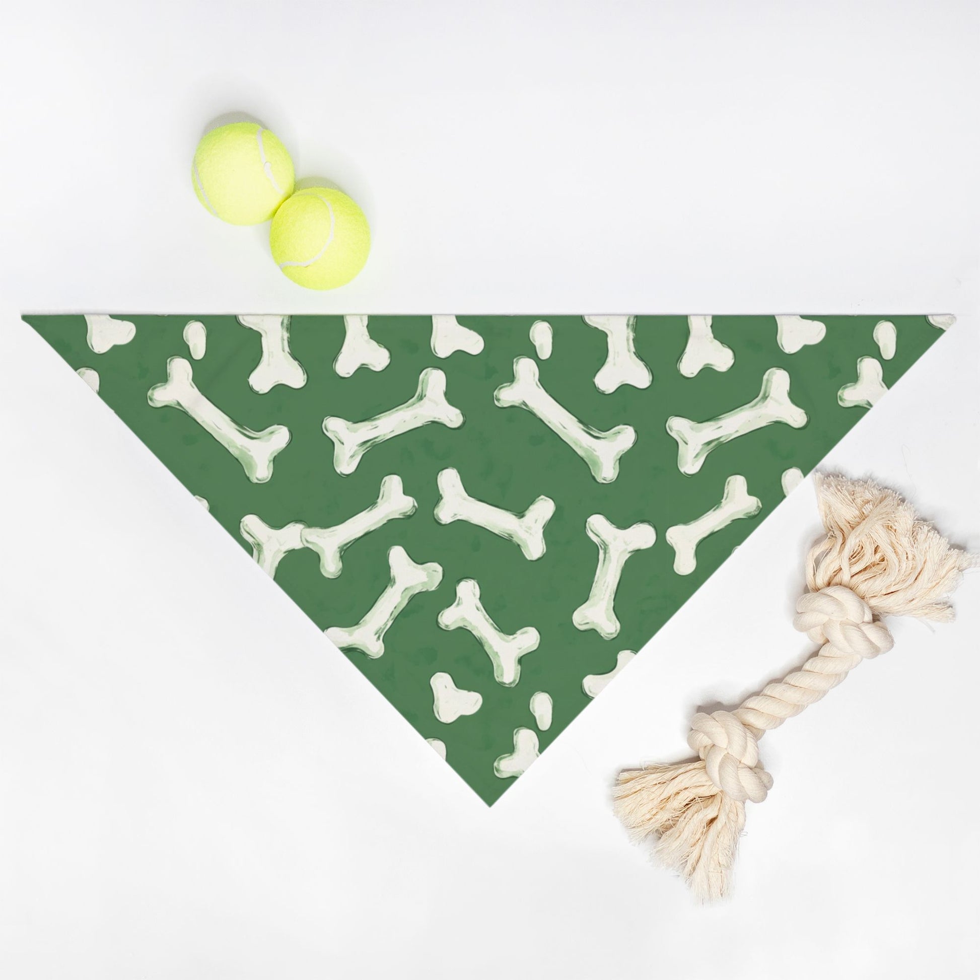 Unleash your pup's personality with the Bones Pet Bandana in vibrant green! Adorned with playful dog bones, this stylish accessory is perfect for outings where tails wag and treats are a must. Whether strutting down the street or sniffing out new adventures, your furry friend will look pawsitively dapper. Designed for those fun dog walks, it not only turns heads but also reminds everyone that your canine is the real treat around. Grab one today, because every good dog deserves to be the bone-afide star of the show!