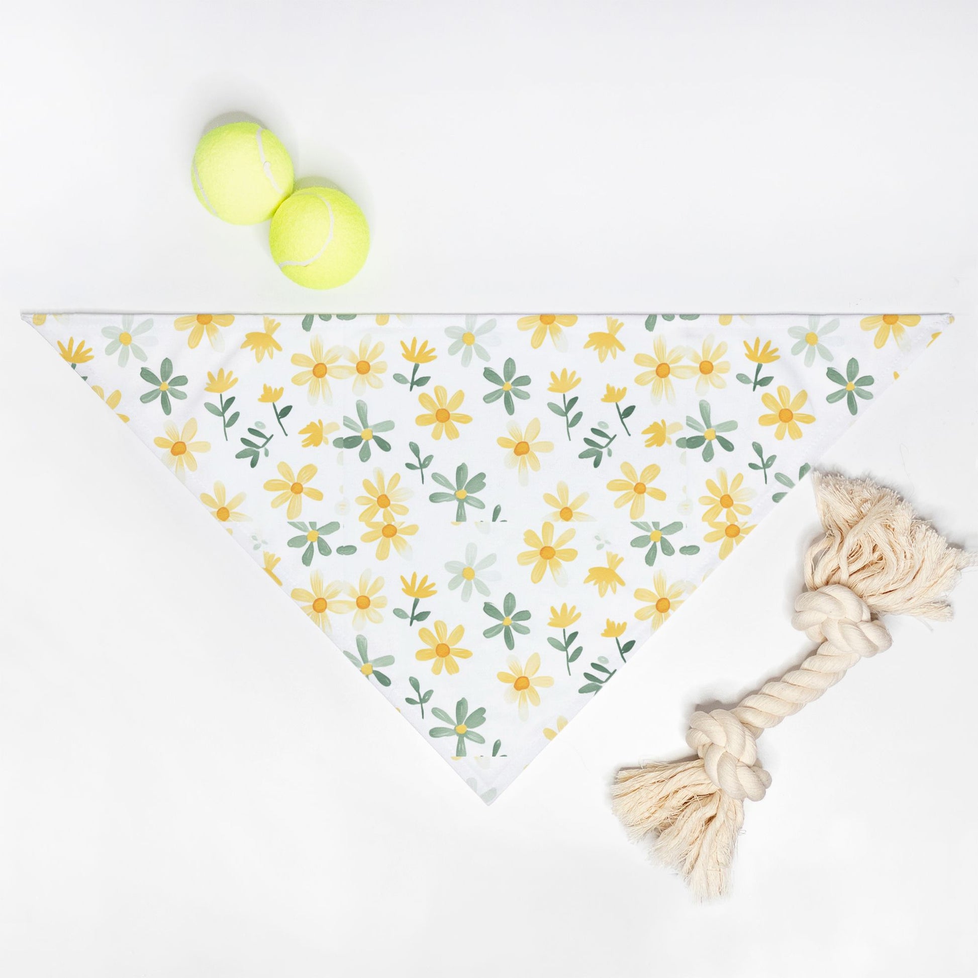 Introducing the Daisy Pet Bandana: the ultimate summer accessory for your furry fashionista! This delightful floral masterpiece transforms your pooch into a stylish garden ambassador, perfect for picnics or pose-worthy park strolls. Crafted from breathable fabric, it ensures your pup stays cool while looking hotter than the summer sun. Plus, the charming daisy print is bound to earn you a few tail wags and envious glances from other dog owners. Let your pet bloom in style with the Daisy Bandana—because every dog deserves a little flower power!