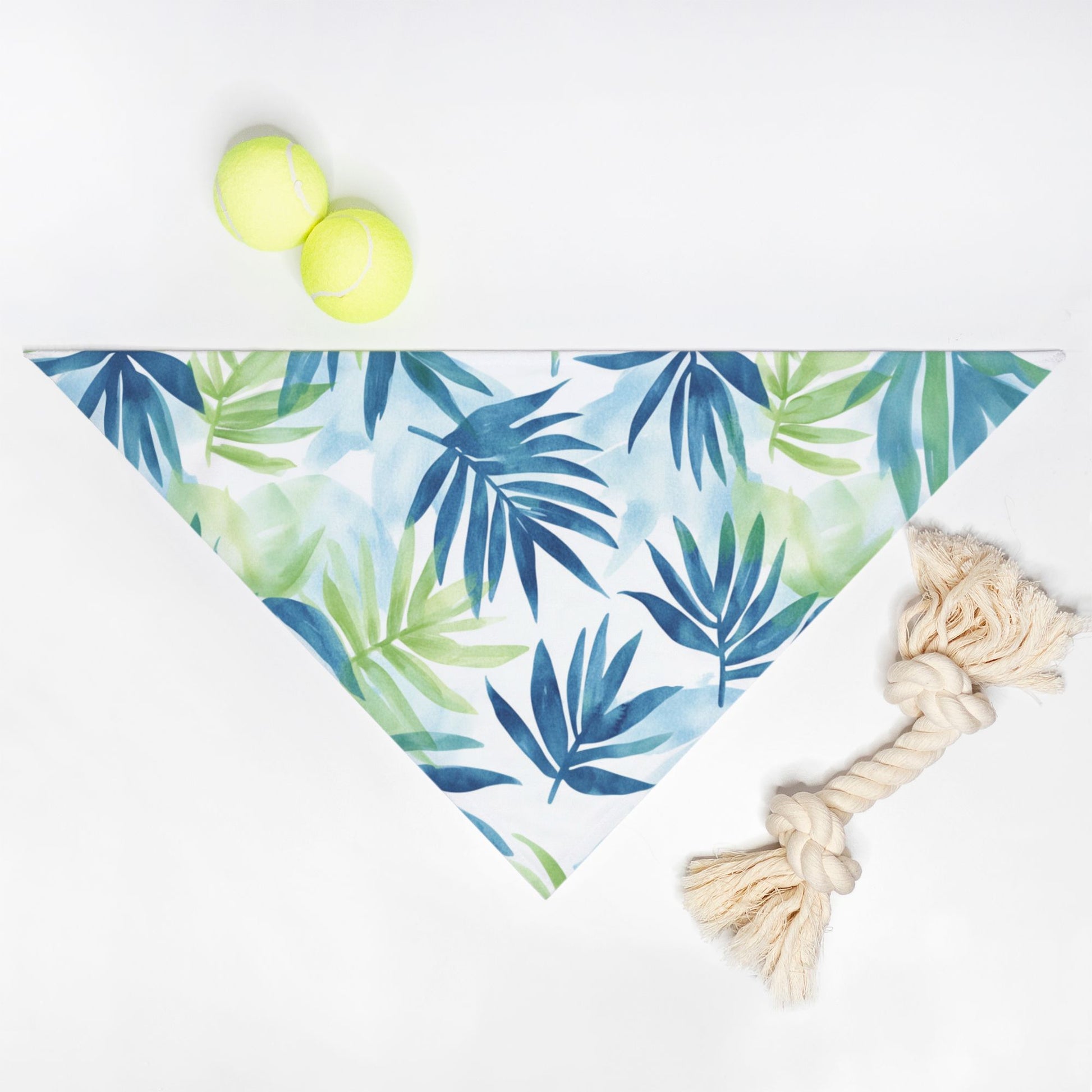 Make your furry friend the talk of the tropical town with the Palms Pet Bandana! Bursting with ocean-inspired colors and palm vibes, this stylish accessory ensures your pet will be the trendsetter of the beach. Whether they're strutting their stuff in the sand or napping in the shade, they'll exude effortless chicness. Perfect for your next tropical vacation, this bandana is a must-have for pets who appreciate a little pizzazz. Because why should humans have all the fun in the sun? Get ready for some serious tail-wagging style!