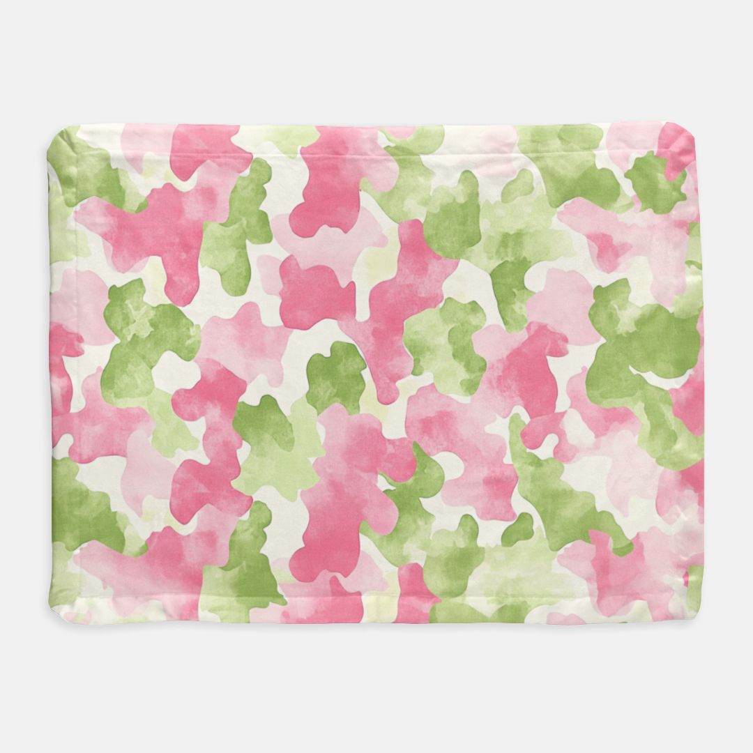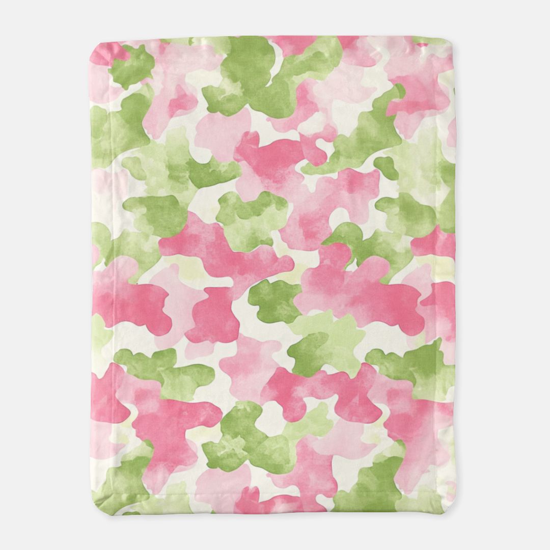 Pink and Green Camo Satin Trim Blanket