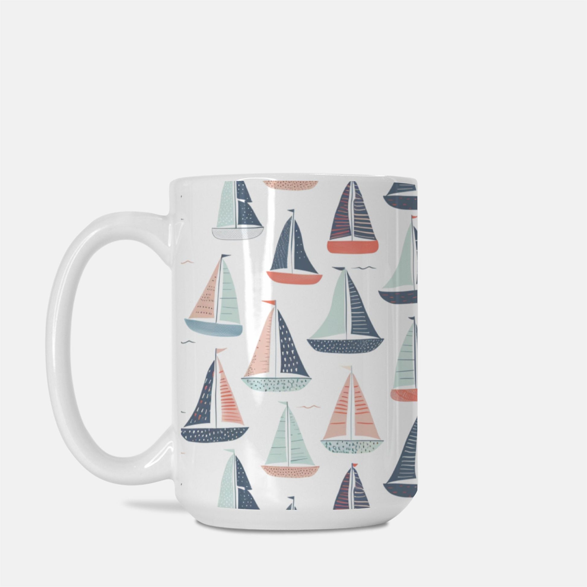Meet the Sailboats Mug Deluxe 15oz, your new first mate for morning adventures at sea—or, let’s be real, your brunch table. Crafted from pristine white ceramic, this mug holds enough coffee to fuel a fleet. Whether you’re plotting your next nautical voyage or just contemplating how to avoid Friday’s meetings, it’s the perfect companion. Designed for adults who know that sailing through life requires a sturdy mug as seasoned as your brunch plans. Raise the sails and sip your way to a nautical morning!