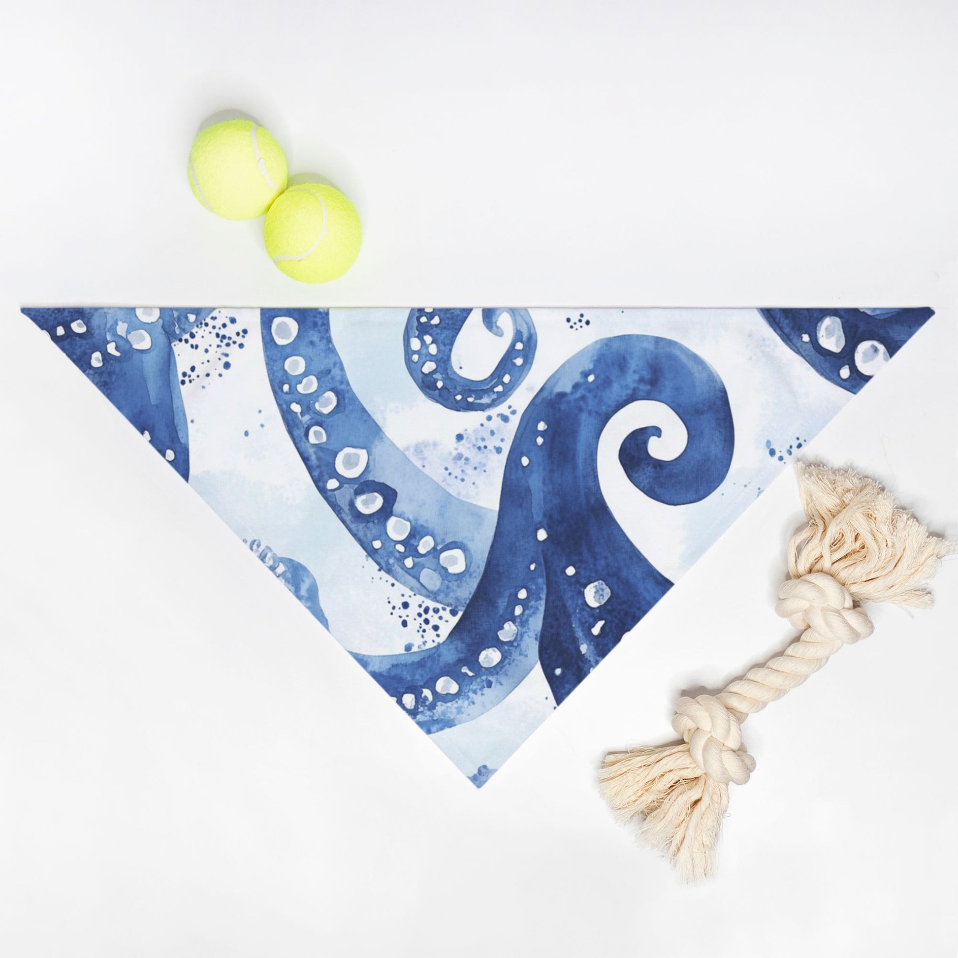 Introducing the Tentacle Pet Bandana in White and Blue! Is your furry friend ready to make a splash at the fishing trip? This snazzy bandana features mischievous tentacles that scream adventure while keeping your pet looking fabulously nautical. Whether they're reeling in the big catch or just lounging by the water, they'll be the talk of the bait shop. Made for both comfort and style, this bandana is the perfect catch for any pet who dreams of the high seas—or at least the nearest pond. Dive into style with the Tentacle Pet Bandana!