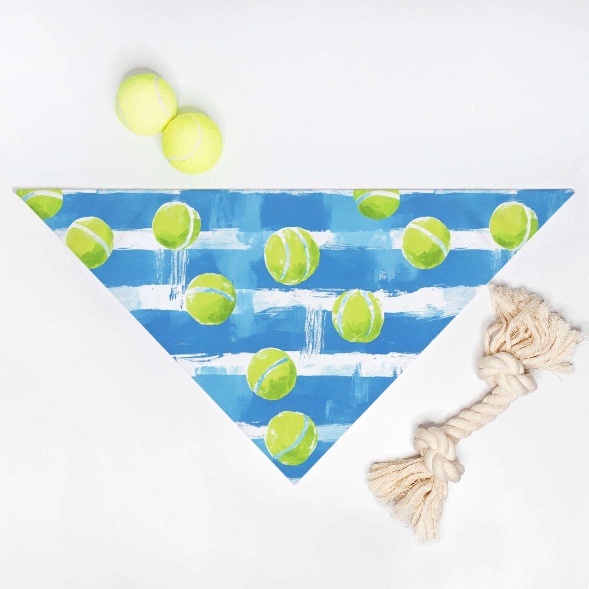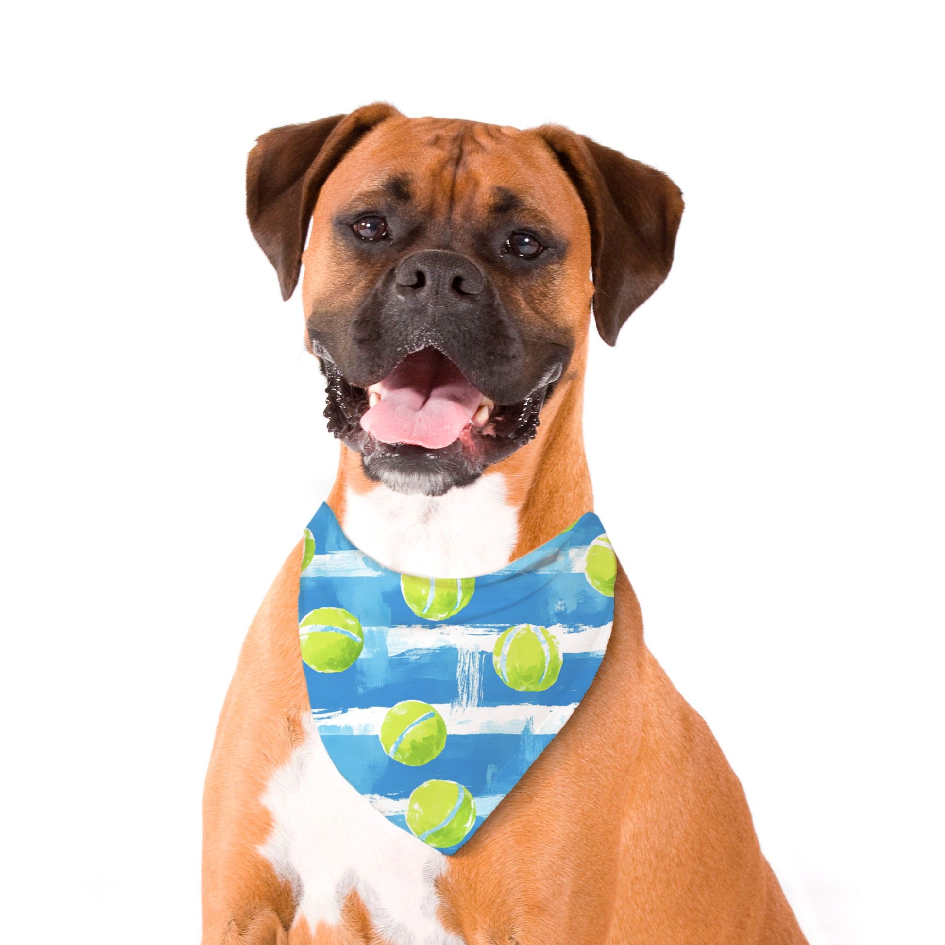 Get ready to serve some serious style on the fetch field with our Tennis Ball Pet Bandana in Bright Blue! Decked out in vibrant blue stripes that scream "playtime", this bandana ensures your furry friend is the most fashionable fetcher around. Whether it's a game of tug-of-war or a casual stroll to the dog park, your pup will be turning heads and wagging tails. Perfect for those canine athletes who take their style as seriously as their chasing skills. Fetch just got a stylish upgrade!