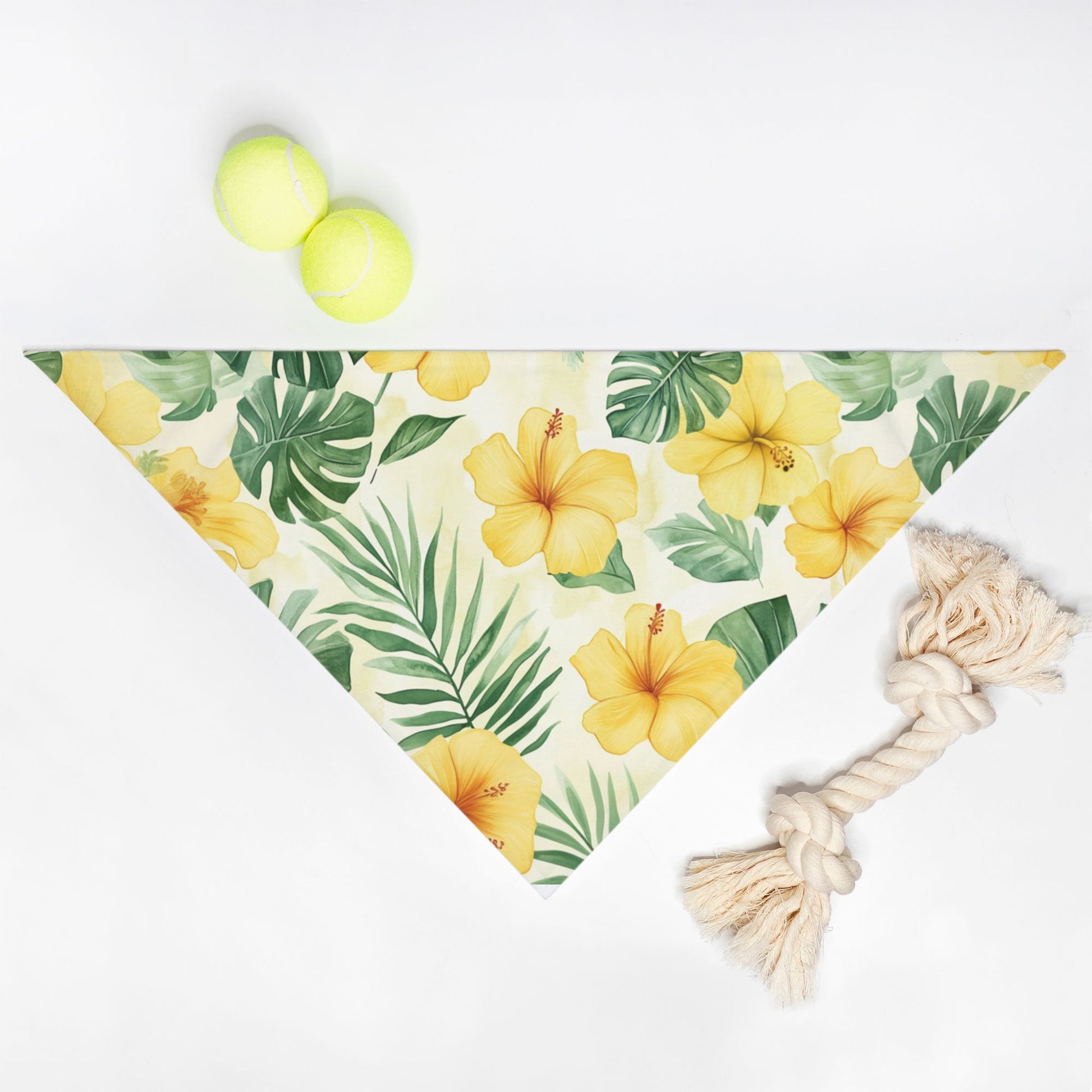 Transform your furry friend into the life of the summer party with our Tropical Pet Bandana in Bright Yellow! Adorned with vibrant flowers that scream "fun in the sun," this stylish accessory will have your pet strutting their stuff like they just won Best in Show. Whether they're lounging by the pool or chasing butterflies, your pet will be the ultimate trendsetter, stealing hearts and maybe a snack or two. Let the sunshine in and the compliments roll out as your pal soaks up the summer vibes in style!