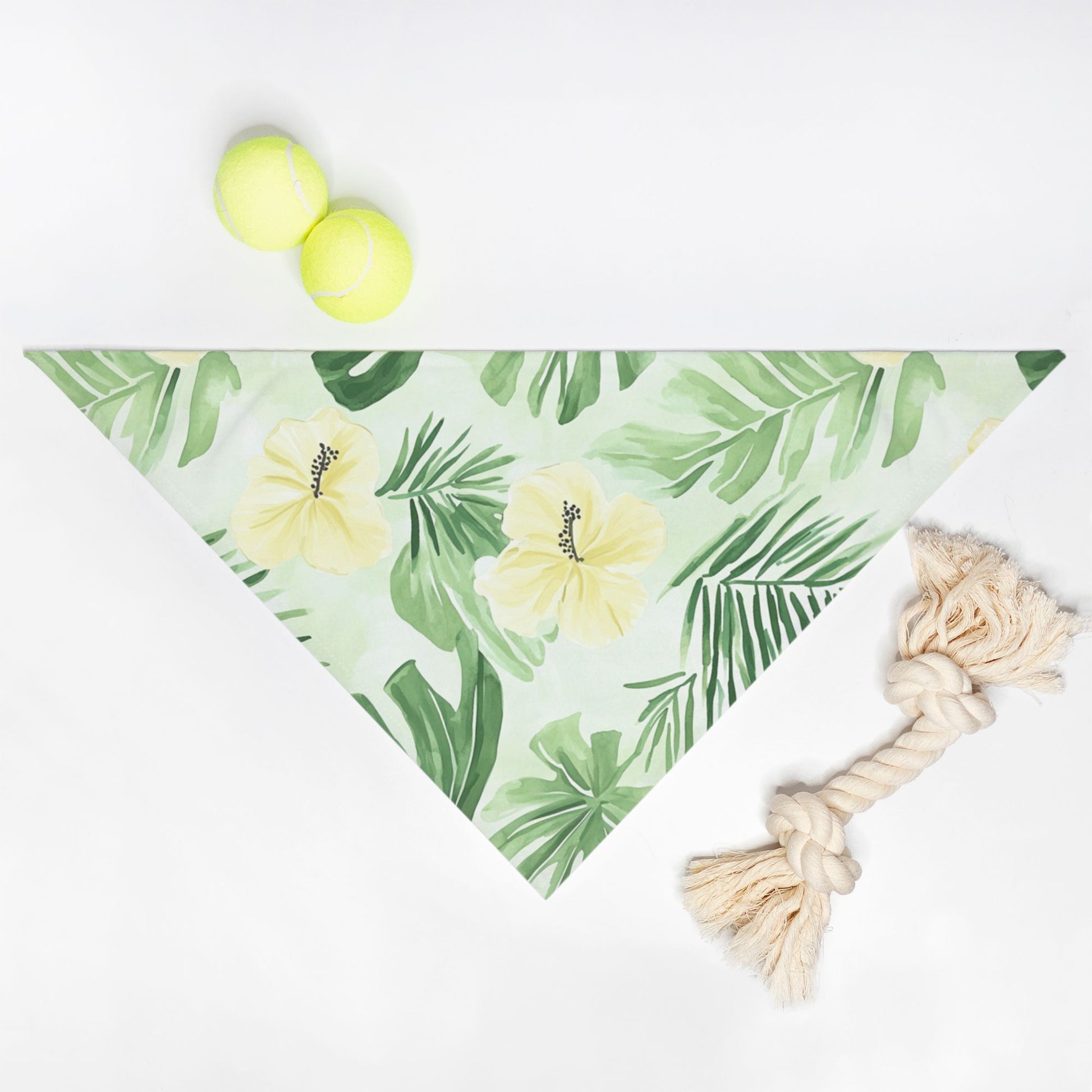 Transform your pet into the ultimate vacation buddy with the Tropical Pet Bandana in vibrant yellow. Featuring a playful parade of yellow flowers straight from the tropics, this stylish accessory ensures your furry friend is always ready for a getaway—whether it’s a trip to the park or a beachside snooze. Lightweight and easy to tie, this bandana combines fashion with function, making every outing feel like a mini-vacation. Dress your pet in tropical charm and watch them steal the spotlight on every adventure!